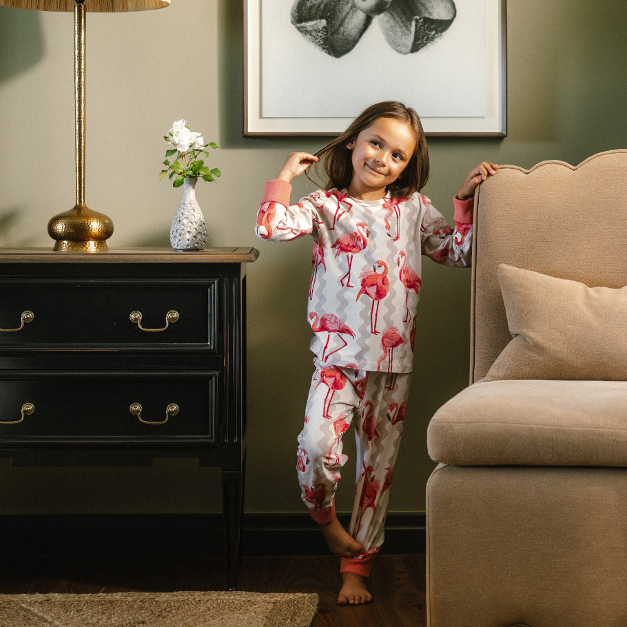 Organic Cotton Flamingo Stripe Print Long Pyjama Set