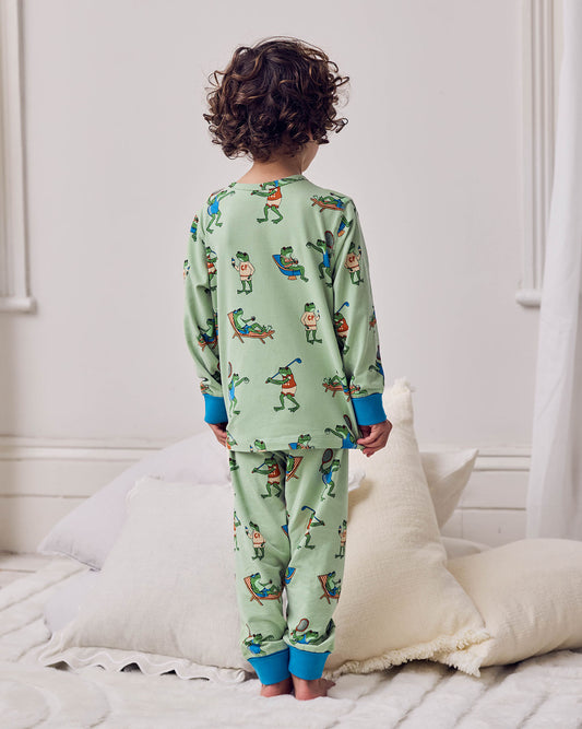 Kids Organic Cotton Sports Frogs Print Long Pyjama Set
