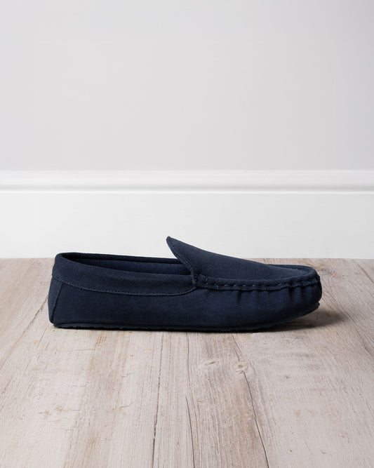 Mens Suede Moccasin Slippers - Navy