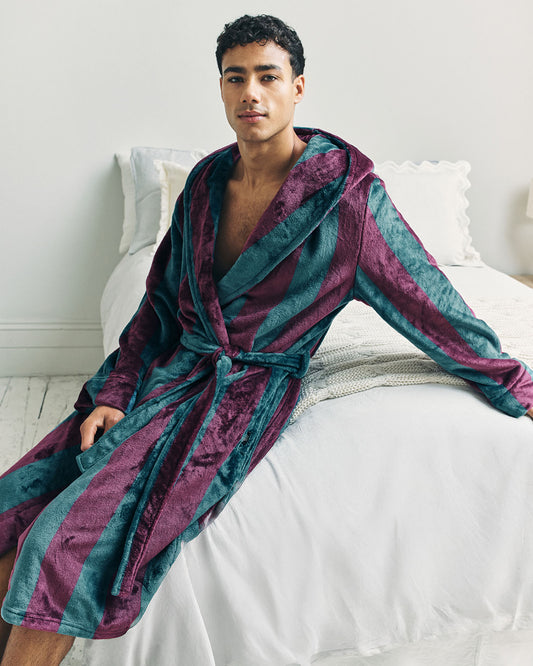 Regular price £60.00Sale priceUnit price per£60.00 Regular price% offFleece Stripe Hooded Dressing Gown - Burgundy -