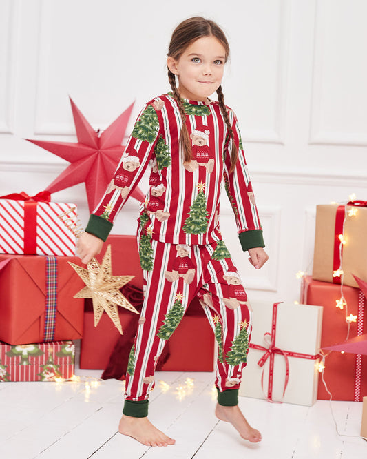 Kids Christmas Teddy Bear Stripe Print Long Pyjama Set