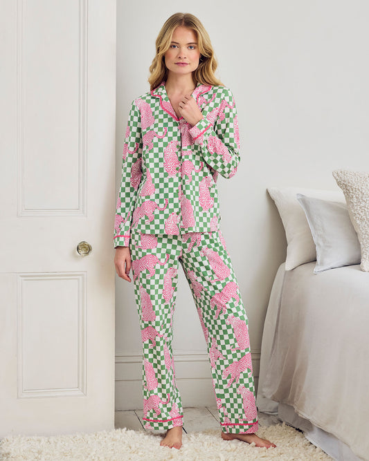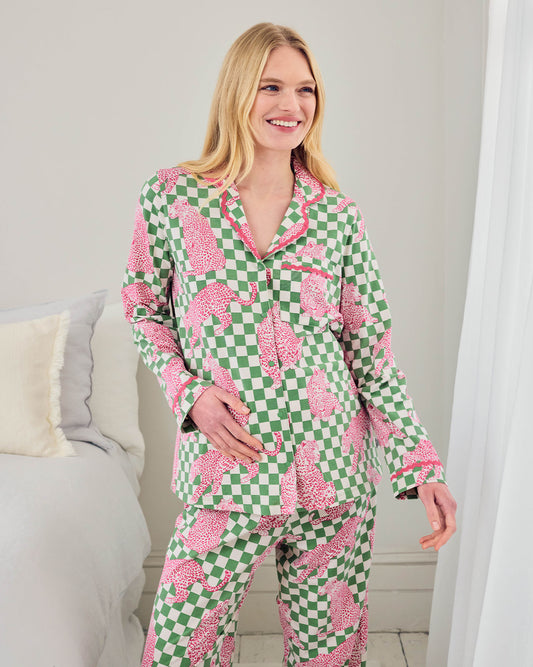 Regular price £55.00Sale priceUnit price per£55.00 Regular price% offPetite Organic Cotton Checkerboard Leopards Print Long Pyjama Set -