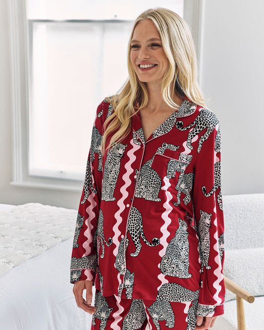 Satin Cocktail Hour Leopard Print Long Pyjama Set