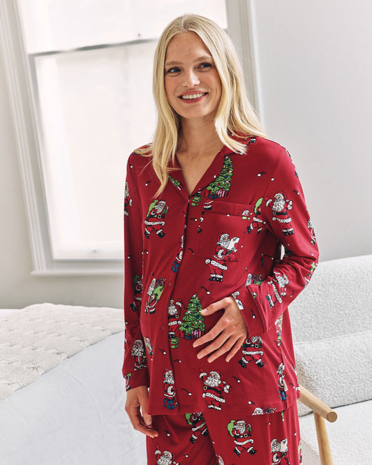 Maternity Christmas Jolly Santa Print Long Pyjama Set