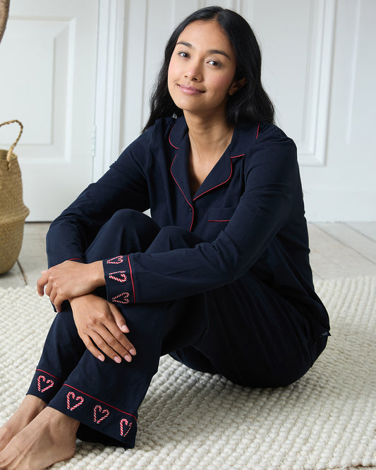 Organic Cotton Embroidered Christmas Candy Cane Heart Pyjama Set