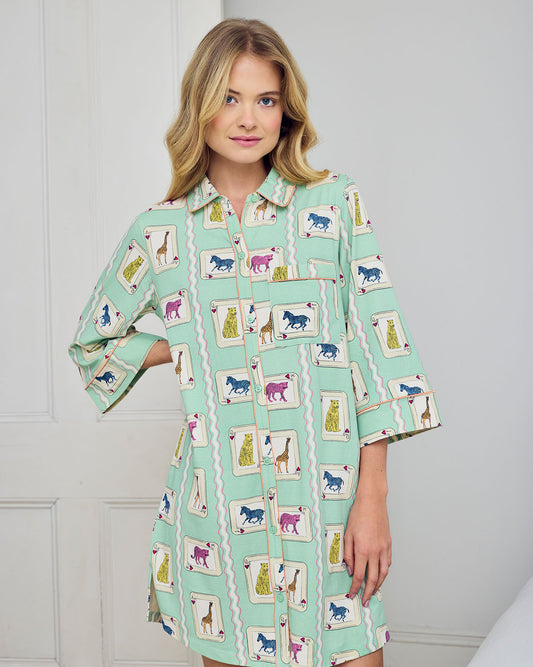 Organic Cotton Playing Card Animals Print Nightshirt
