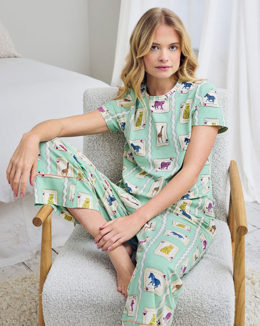 Organic Cotton Playing Card Animals Print Short Pyjama Set