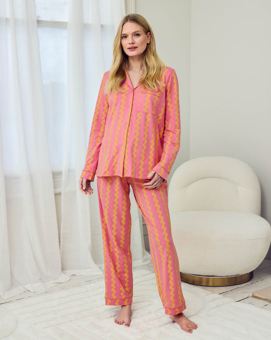 Maternity Organic Cotton Sunset Wavy Stripe Long Pyjama Set