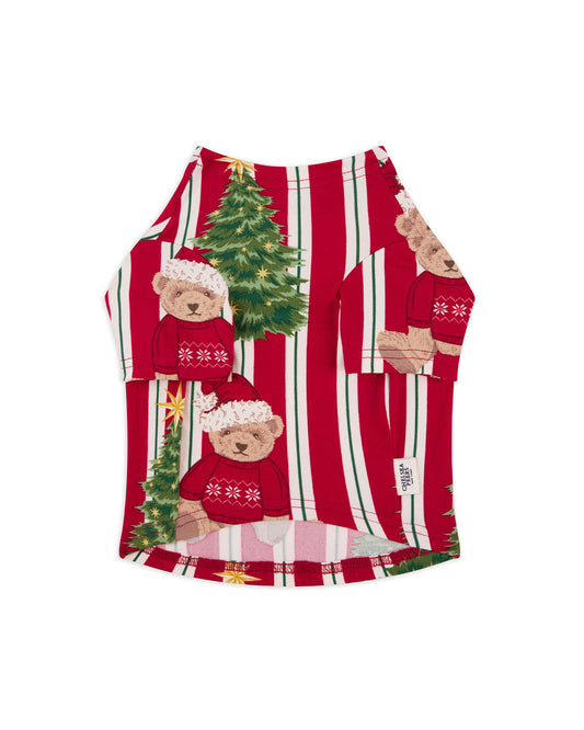 Pets Christmas Teddy Bear Stripe Print Pyjama T-Shirt