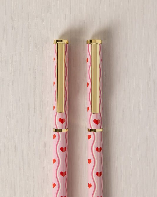 Wavy Heart Print Twin Pack Boxed Pen Set