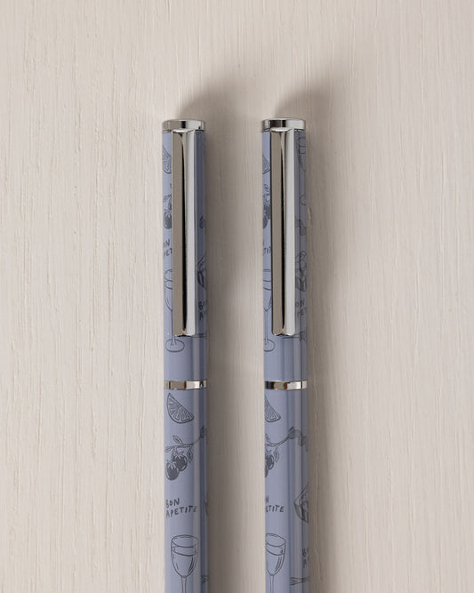 Supper Club Print Twin Pack Boxed Pen Set - Blue