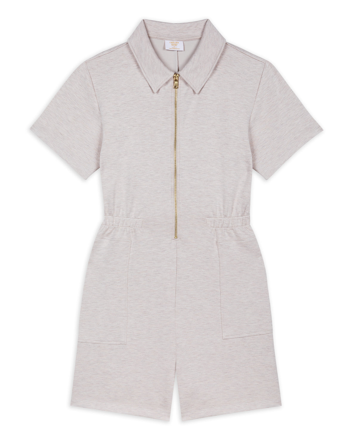 LuxeComfort Scuba Short Playsuit - Beige Marl