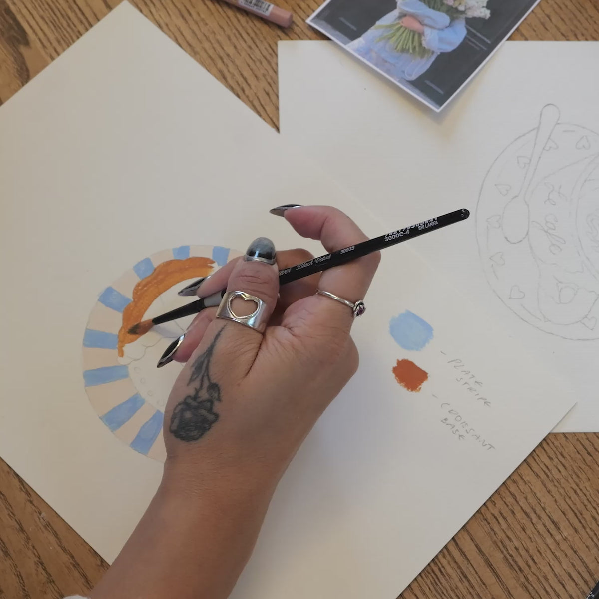 From a bunch of spring tulips to a cup of freshly brewed coffee and a perfectly buttery croissant, every hand-painted detail captures the comfort of a slow Sunday morning. A pastel-toned ode to taking your time.