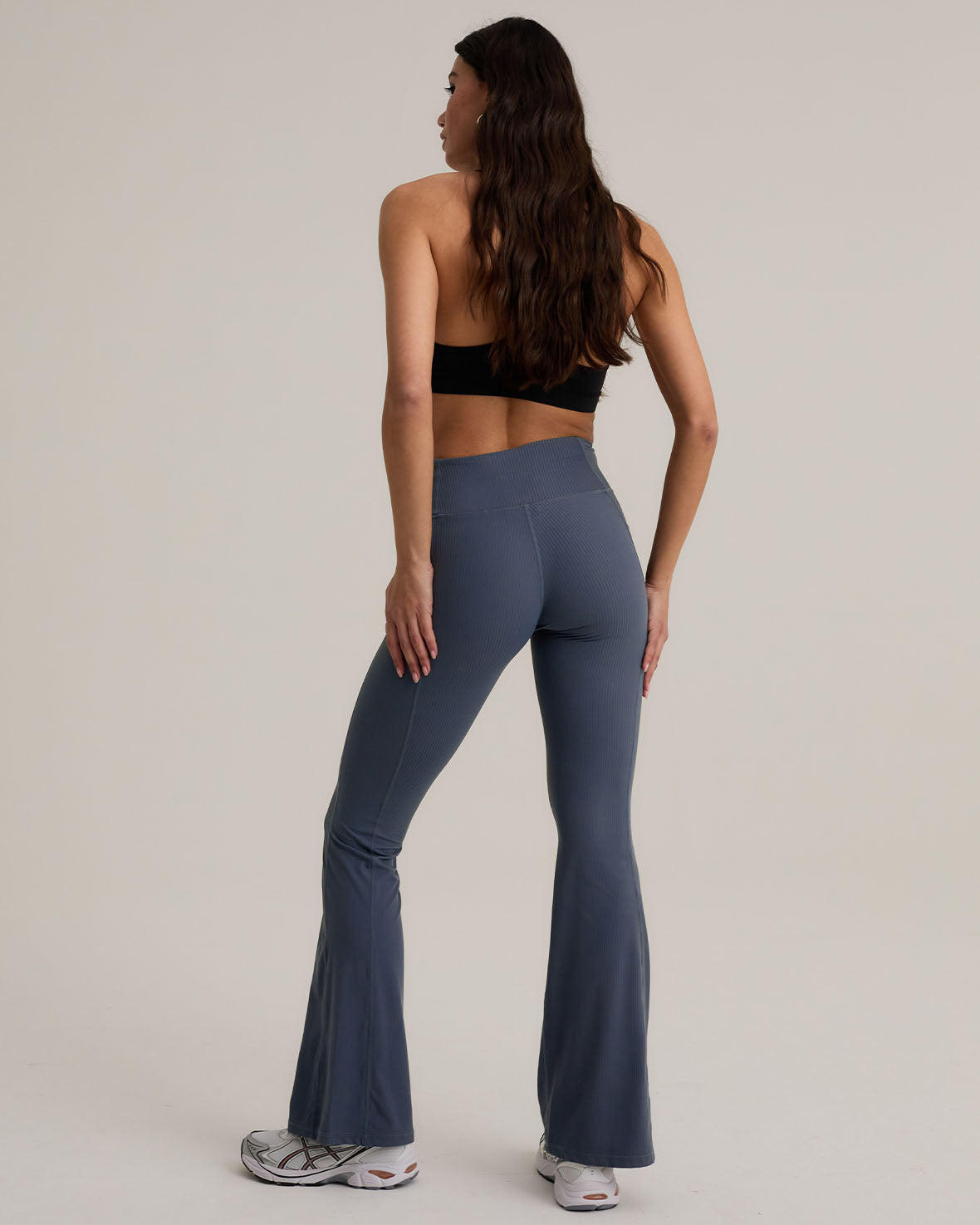 Engineered with performance in mind, our SoftSculpt ribbed leggings smooth and support, combining 4 way stretch with moisture-wicking qualities. The flattering flare shape pairs with a multi-way waistband that can be worn high-rise or folded over for a low-rise fit.
