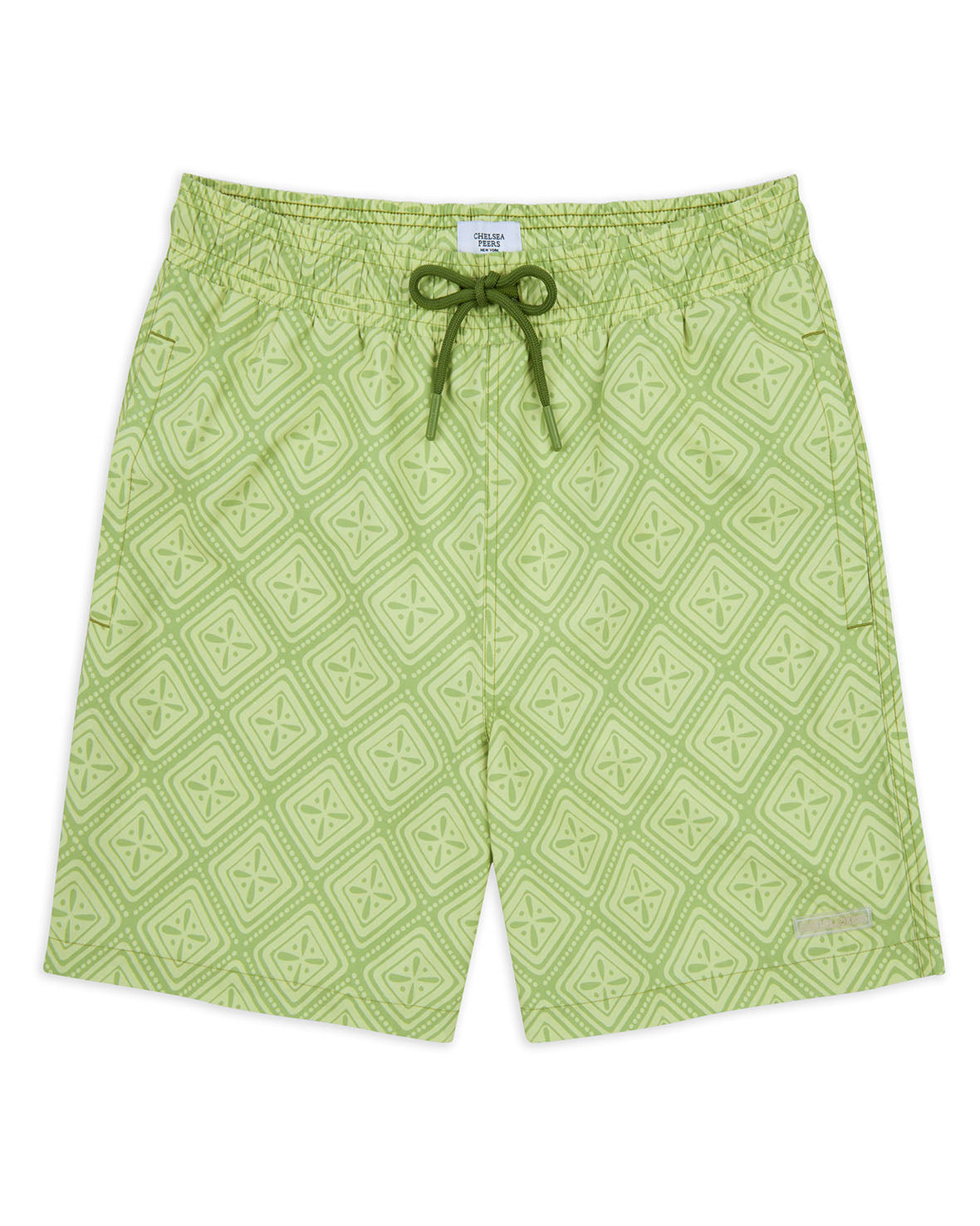Bright and bold, these lime tile print swim shorts are sure to make a splash this summer.