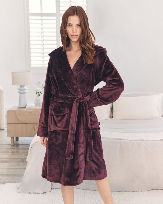 Classically elegant, this sage green and cream striped dressing gown is crafted from our most luxurious recycled fibres fleece fabric. Soft and almost silky to the touch, this plush robe features a shawl collar neckline and long self tie belt.