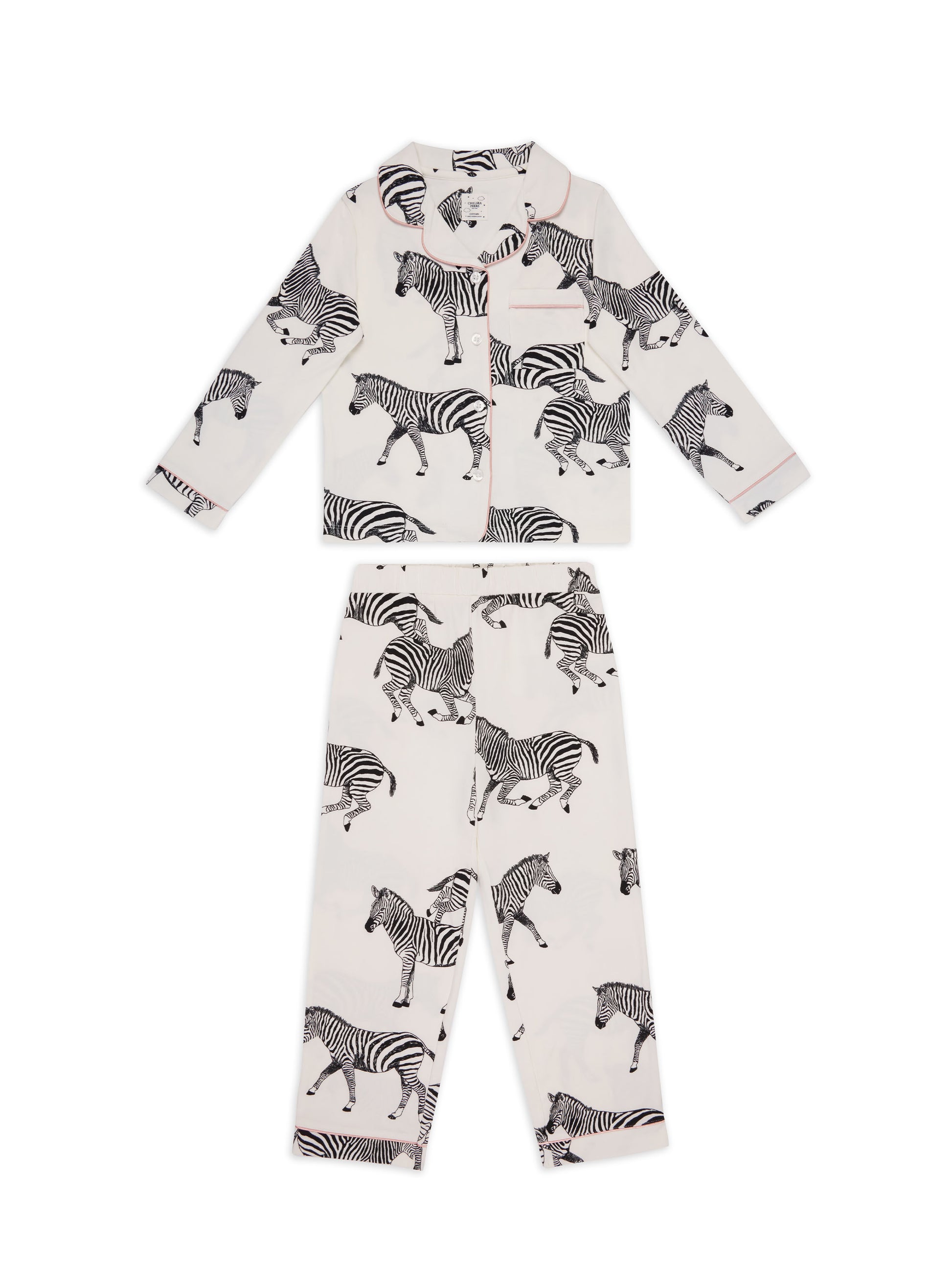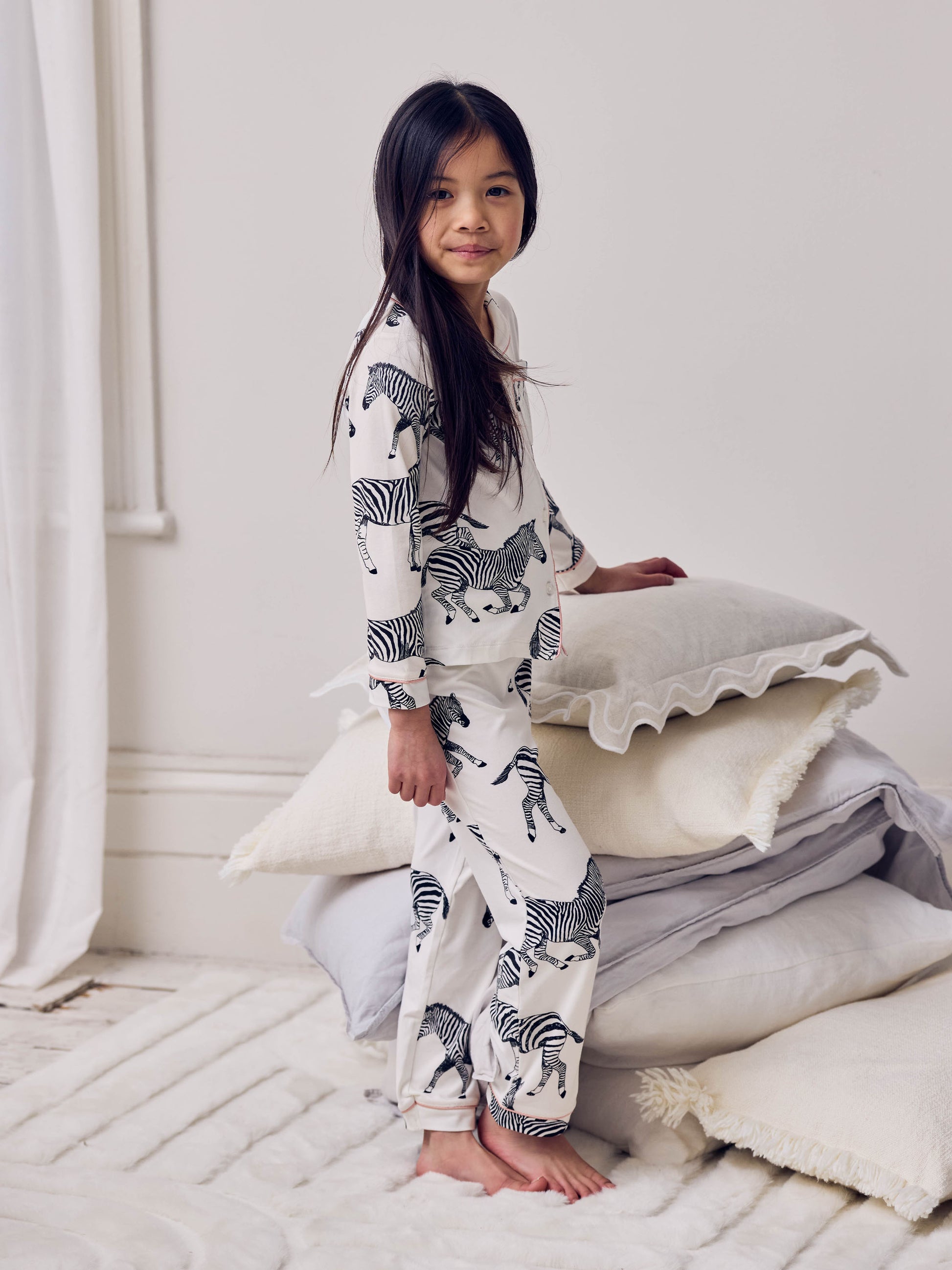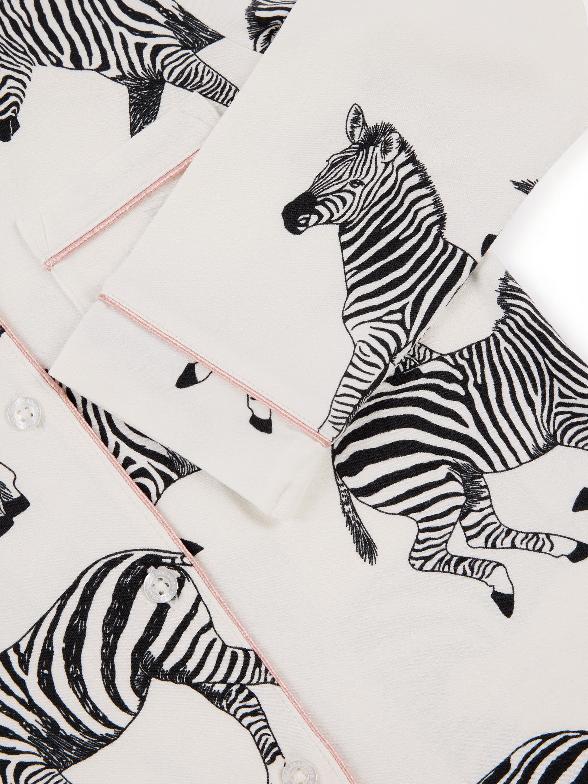 Add character to their bedtime routine with these kids' white pyjamas, patterned with zebras. The originators of monochrome stripes! This cosy button-up style is perfect for lounging after a long day and is equally comfy when it's time to get into bed.